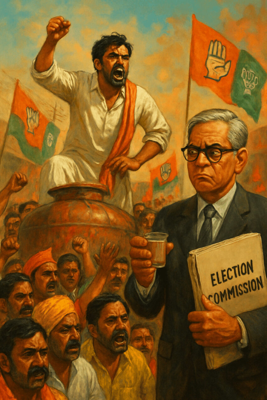 [Opening music, moving graphics, blazing headlines across screen] Text on screen: BLO GONE ROGUE? REEGU’S TANK TOP BLAST! Arnab (thundering): “Good evening ladies and gentlemen — THIS is The Nation Wants To Know! Tonight, the country is asking — has Basanti Power been stolen… or has Reegu’s Congress party simply lost it at the booth level? And if the voter list is rigged, why are even his own BLOs involved? WHAAAAT is going on?!” Panelists: – Reegu (Congress leader, joining from his water tank) – BJP Spokesperson (grinning ear-to-ear) – Election Commission official (“Mousi”) – An Emotional BLO (from an undisclosed booth) – Political AnalystArnab: “Reegu, you are up there — literally and metaphorically — shouting ‘vote theft, vote theft’… but sir, your BLOs — YOUR OWN BLOs — are part of this process. Changes to voter lists happen with BLO consensus! Are you telling this nation that your own party’s ground force has betrayed you?” Reegu (sweating, shouting back): “Arnab, Basanti Power is missing! BJP and EC have conspired! Everybody is together in this scam!” Arnab (cutting in mid-sentence): “EVERYBODY together? Even YOUR party’s BLOs? Viewers, please listen — he just admitted it! If his BLOs are part of it, then his claim is basically ‘my own people are in it’, which means Congress has COLLAPSED at the BOOTH LEVEL! You can’t blame the umpire when your own wicketkeeper drops the ball!” BJP Spokesperson (smirking): “Exactly Arnab! What Reegu is saying is like blaming the referee when your own striker is kicking self goals!” Reegu (furious): “Don’t twist my words! The war for Basanti Power is—” Arnab (yelling over): “ONE MINUTE! ONE MINUTE! THE NATION WANTS TO KNOW — if the war for Basanti Power is at the booth level, Reegu, WHERE are your booth soldiers? Your BLOs are either missing, sleeping, or — as our sources say — having tea with the ‘other side’!” Mousi (EC, calmly): “Arnab, procedure is clear — name deletions in voter lists happen only after notice, and with agreement from party BLOs. If they didn’t object, then either fraud didn’t happen… or the Congress BLOs agreed to it.” Arnab: “WHICH MEANS — either this is a non-story or it’s self-sabotage. Viewers, this is incredible — Reegu is on a tank shouting at ME and the NATION, when he should be asking his BLOs: ‘Where were you when Basanti Power was taken away?’” Emotional BLO (tearfully): “Arnabji, what can I say? There’s no chai, no chair, no fan at the booth. Some BLOs… they just gave up. Some joined the winning side… Others never saw Basanti Power after 2014…” Arnab (pouncing on this): “THERE! There’s your headline, ladies and gentlemen — BLO BREAKDOWN! Basanti Power Missing Since 2014! Reegu, do you hear your own ground worker? This is not EC theft — THIS is a Congress-level desertion!” Political Analyst: “Arnab, bottom line — if Congress doesn’t control the booth level, no voter list manipulation can help or hurt them. Without ground force, ‘Basanti Power’ is just a movie title, not an achievable reality.” Arnab (leaning forward, dramatic close): “Reegu, forget the tank. Forget the cameras. Go to the booths. Find your BLOs. Until then, the nation will keep asking — is Basanti Power gone… or did you lose it yourself? GOOD NIGHT.” [Theme music blares, abrupt cut to commercial break.]