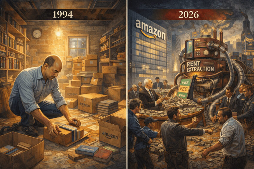 Yet three decades later, the company he built has become the antithesis of that founding philosophy. Amazon in 2026 represents not the culmination of the efficiency principle but its abandonment. The transformation of Amazon from an efficient marketplace to a rent seeking extraction center is a story of corrupting influence of scale and the tension between founder vision and corporate machinery.