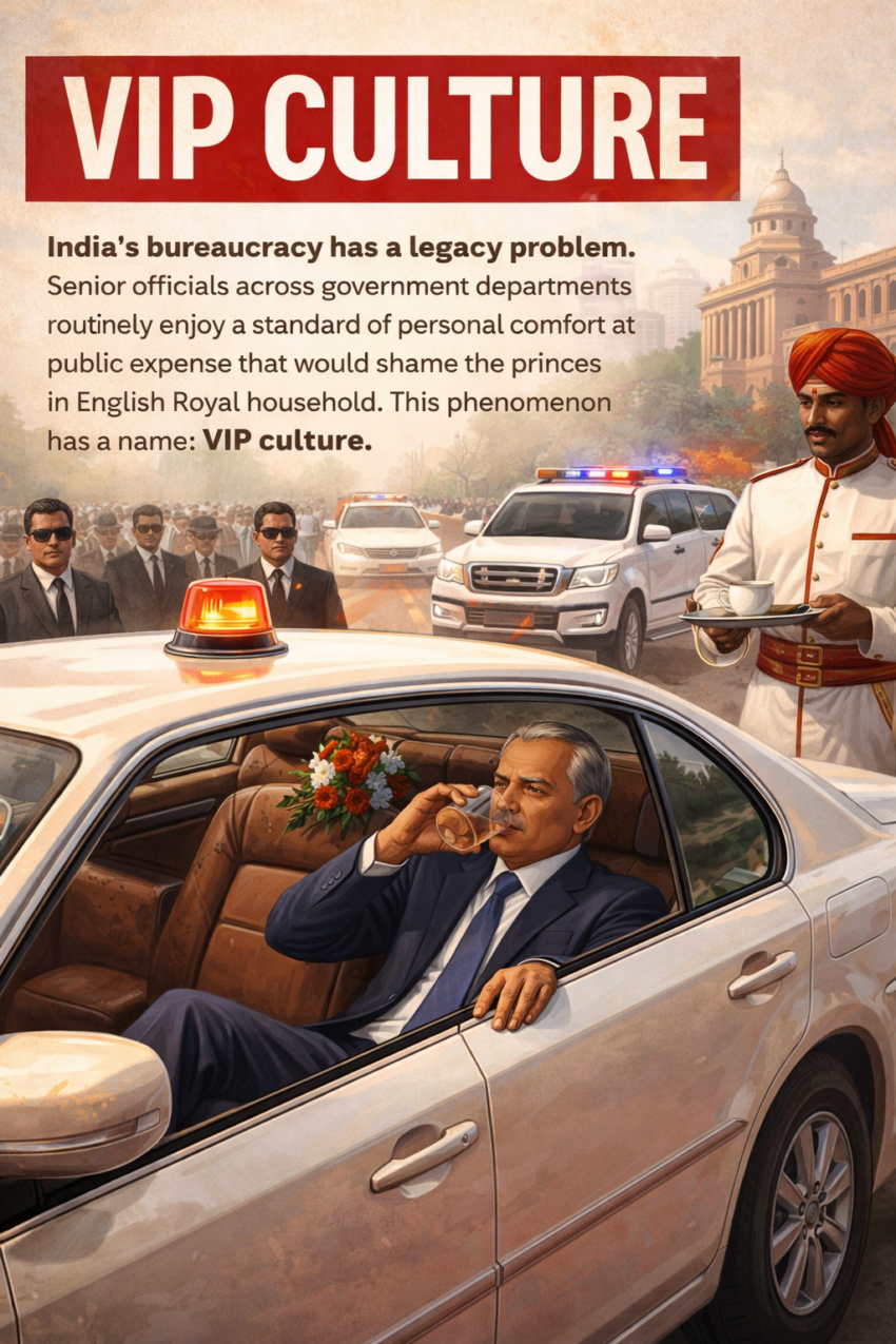 India’s bureaucracy has a legacy problem. Senior officials across government departments routinely enjoy a standard of personal comfort at public expense that would, shame the princes in English Royal household. This phenomenon has a name: VIP culture. It is not a collection of isolated incidents. It is a self-reinforcing system in which rank automatically converts public resources into private entitlements.