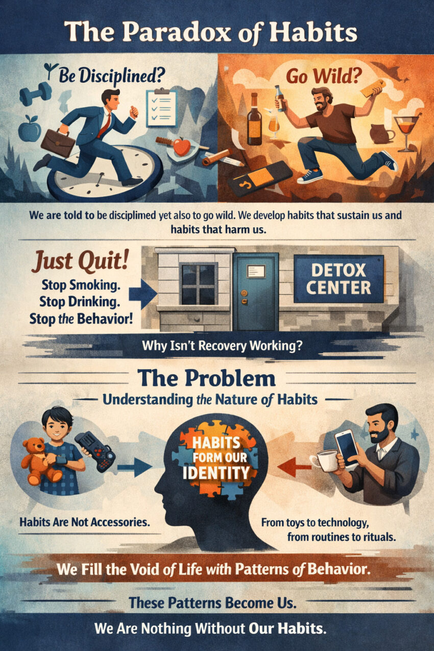 Modern life presents us with a fundamental contradiction. We are told to be disciplined yet also to go wild. We develop habits that sustain us and habits that harm us. The cultural narrative around harmful habits is simple: just quit. Stop smoking. Stop drinking. Stop whatever behavior troubles you. But this approach fails consistently. Detoxification centers promise recovery, yet few people emerge truly free from their addictions. It is difficult to meet a single person who successfully recovered through such programs alone.