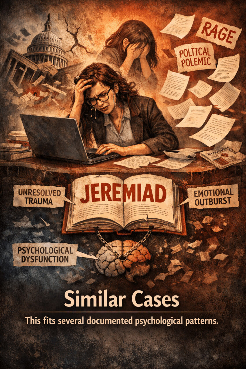 If true, it is sad. The pattern then clearly fits deep psychological dysfunction. She becomes a case study. Not a scholar making arguments. A person acting out unresolved trauma through political polemic. The work becomes symptom, not analysis. The reader should approach it with that understanding.