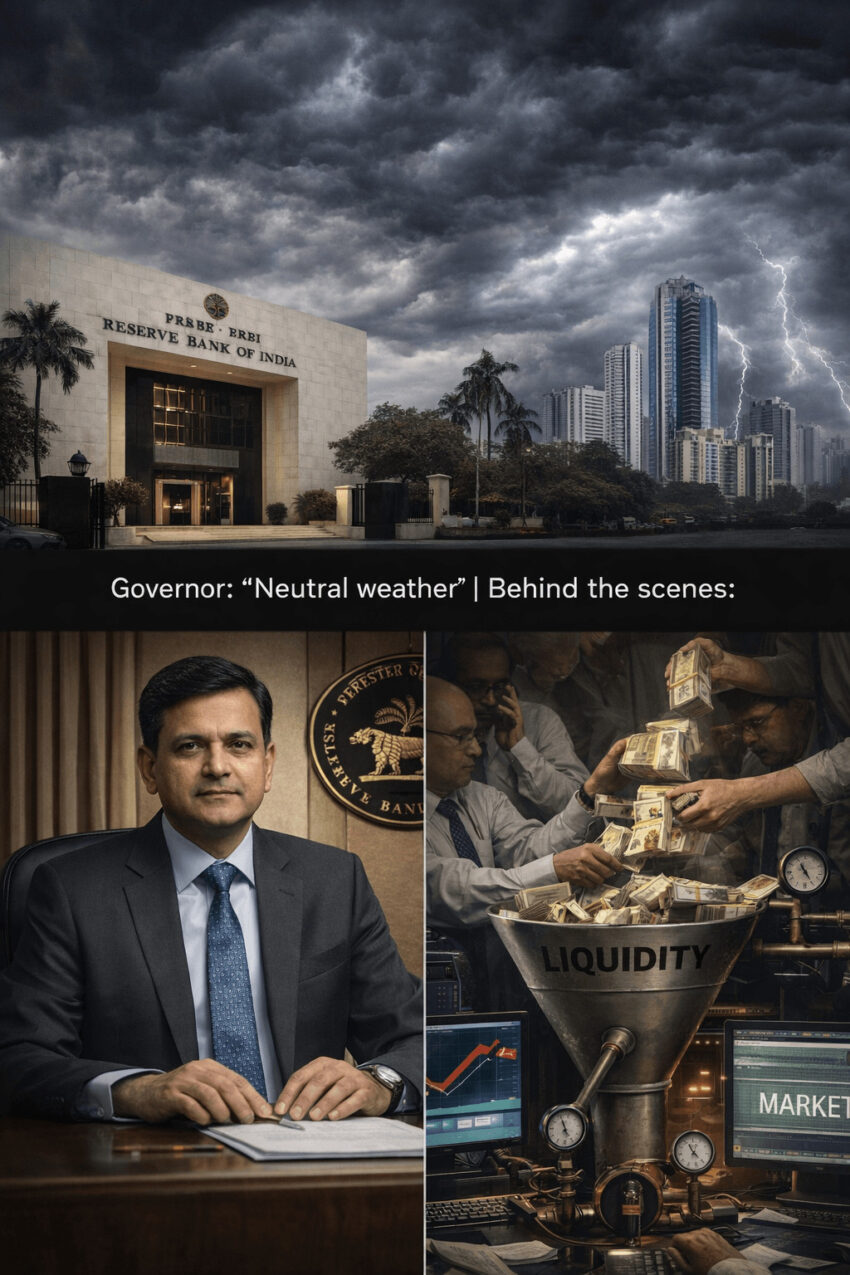 The Governor (the “Bad Lender”) takes the stage to stay firm. He talks about “neutrality.” He refuses to drop the official price of money (the Repo Rate). Meanwhile, the RBI’s Desk (the “Good Lender”) is working the back alleys. It’s pumping trillions of rupees into the system. This ensures the “Bad Lender’s” high rates don’t actually break anything.