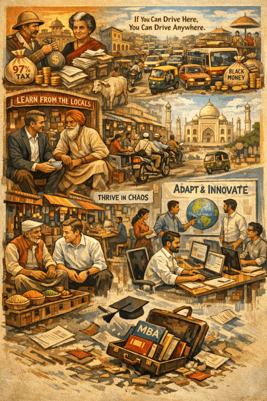 What appears as improvisation to outsiders is actually sophisticated problem solving developed in the world’s most challenging business environment. Growing up navigating Indian bureaucracy, infrastructure gaps, and resource scarcity creates adaptive intelligence that transfers everywhere. When you’ve operated in an environment where rules change arbitrarily, Western business volatility feels manageable.