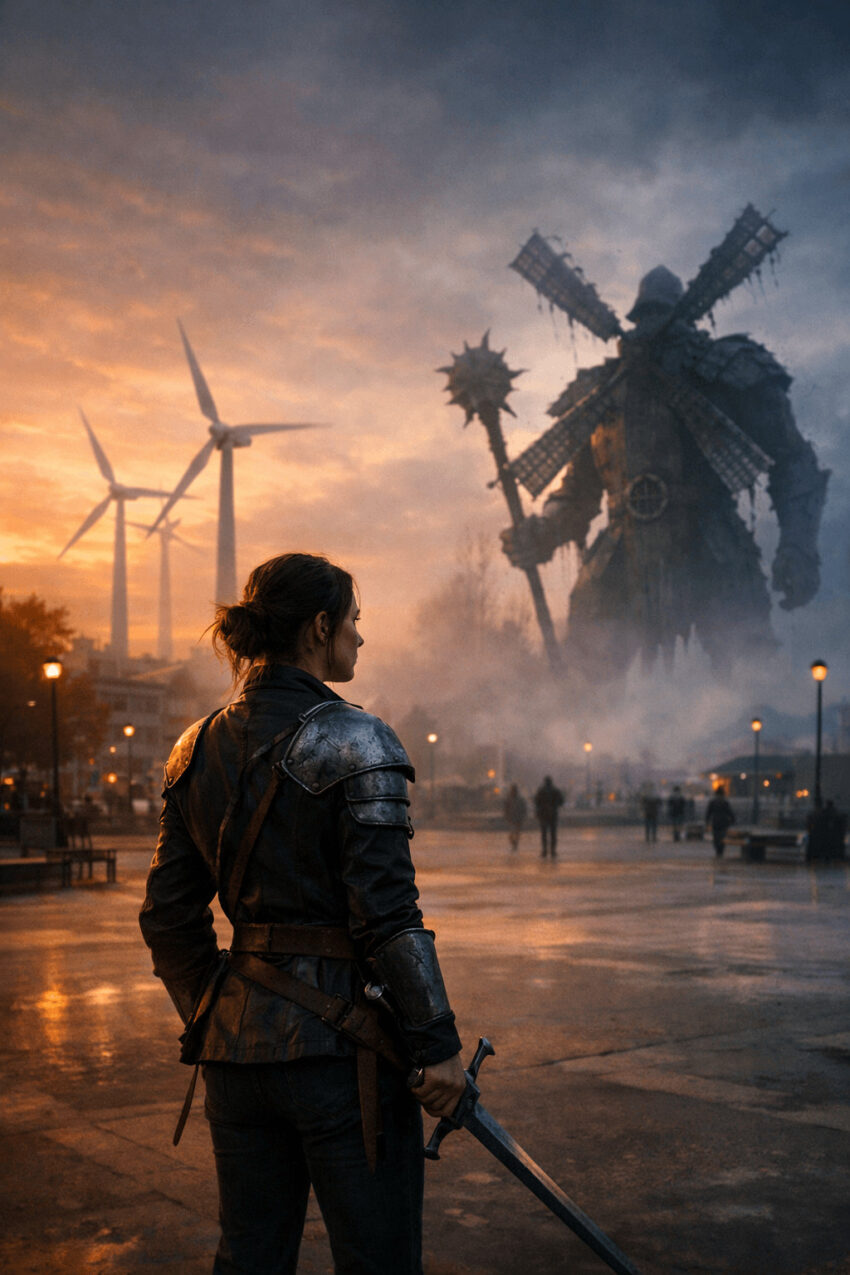 What makes it compelling is the sincerity. Don Quixote isn’t pretending. He truly sees threats everywhere because his worldview demands enemies to fight. His servant Sancho sees reality clearly but goes along anyway.