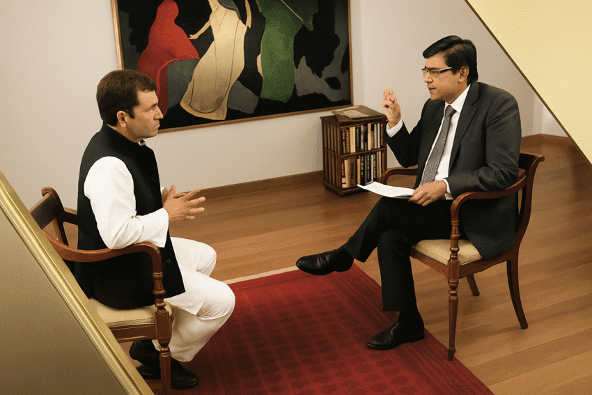 The January 2014 interview with Arnab Goswami was meant to be Rahul’s prime-time debut before crucial elections. Instead, he got ridiculed for sounding repetitive, mentioning RTI, women’s empowerment, and MNREGA constantly while appearing dodgy. When pressed on Modi and the Gujarat riots, he deflected to: “The congress party and the BJP have two completely different philosophies…it needs to give women democratic powers, it needs to give youngsters democratic powers.”
